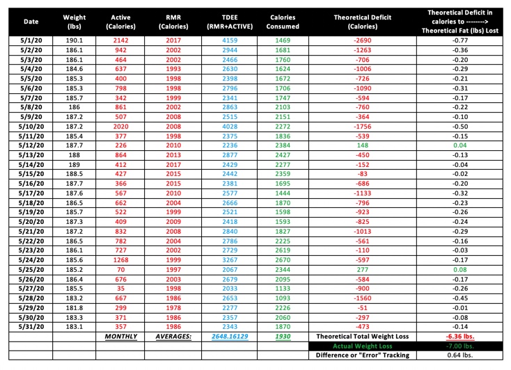 Iām 5ā9.5ā tall & weigh 183 lbs & my average calorie intake was around 1930 calories (some days I ate over and some days I ate under)